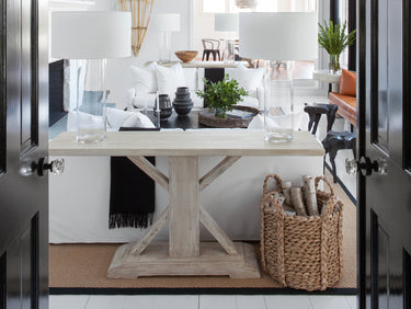 After five short months, and a four-day installation, the result was a black and white beach house perfect for entertaining. It is casual enough to minimize worry – white Perennial fabric on the sofas were tested with red wine on the first day! - and timeless enough that even five years later it still feels as fresh and easy breezy as the day we welcomed our client home.