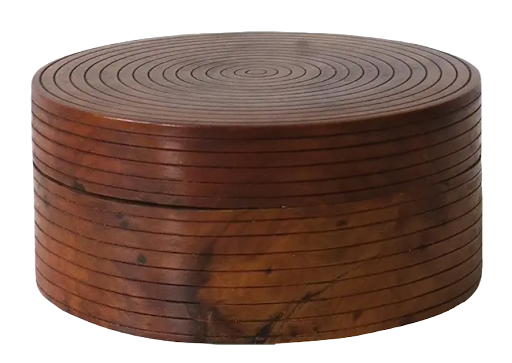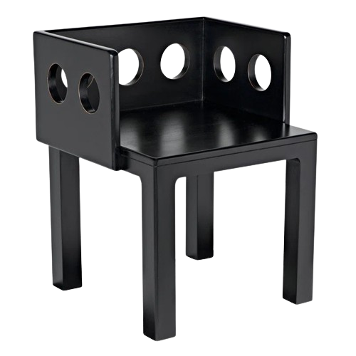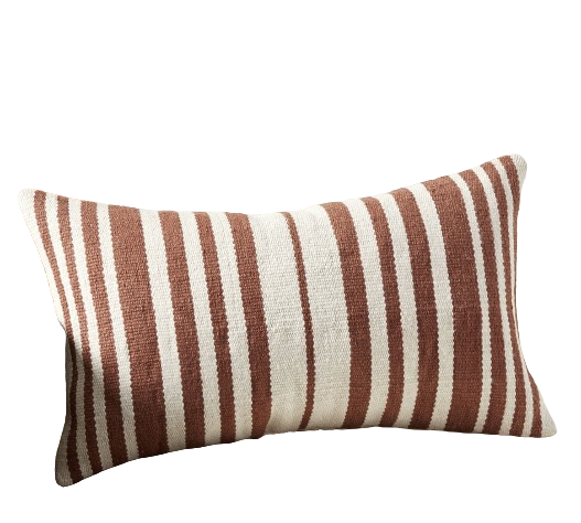 These are a few of my favorite things – an old costume cabinet now lives as additional tabletop storage, topped by a maquette from Lumber and Salt and woven basket from Big Daddy Antiques in Los Angeles. The chairs were thrifted and repainted, and the striped rug is custom from Woodard and Greenstein. Pillows are Etsy and Camira.