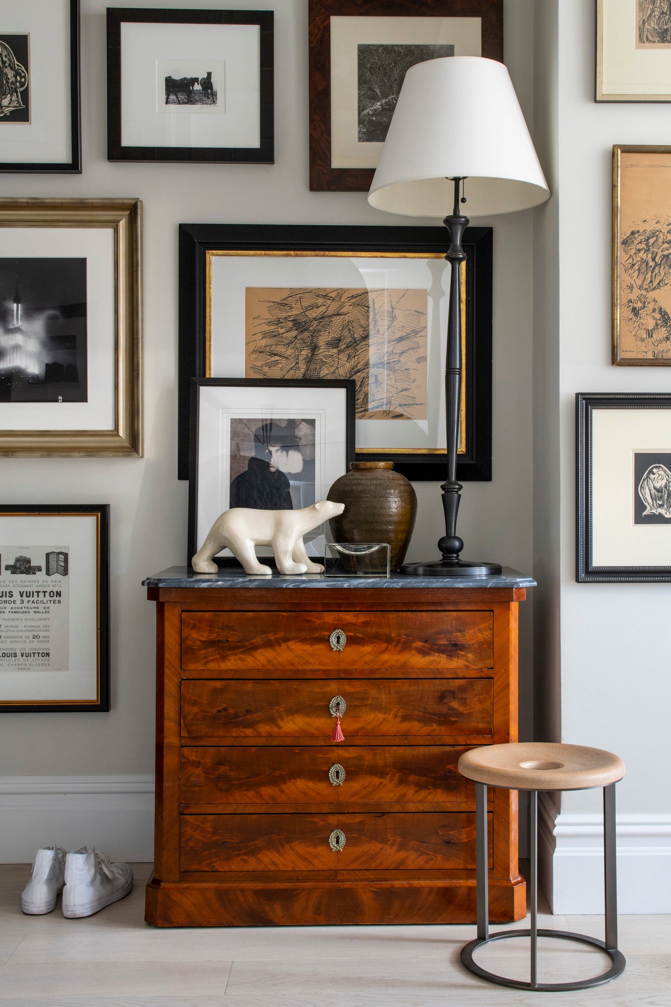 Our front entry represents a blend of old and new - the art is a mix of mine and Andy’s, much of which has lived in our apartments through the years. The Lamp was a purchase from Aero’s Broome Street store, and the chest of drawers was bought on Chairish for this spot. The little stool we bought at a resale shop in San Francisco, and the Polar Bear was a gift from my Mom on a trip to Paris - ooh la la.