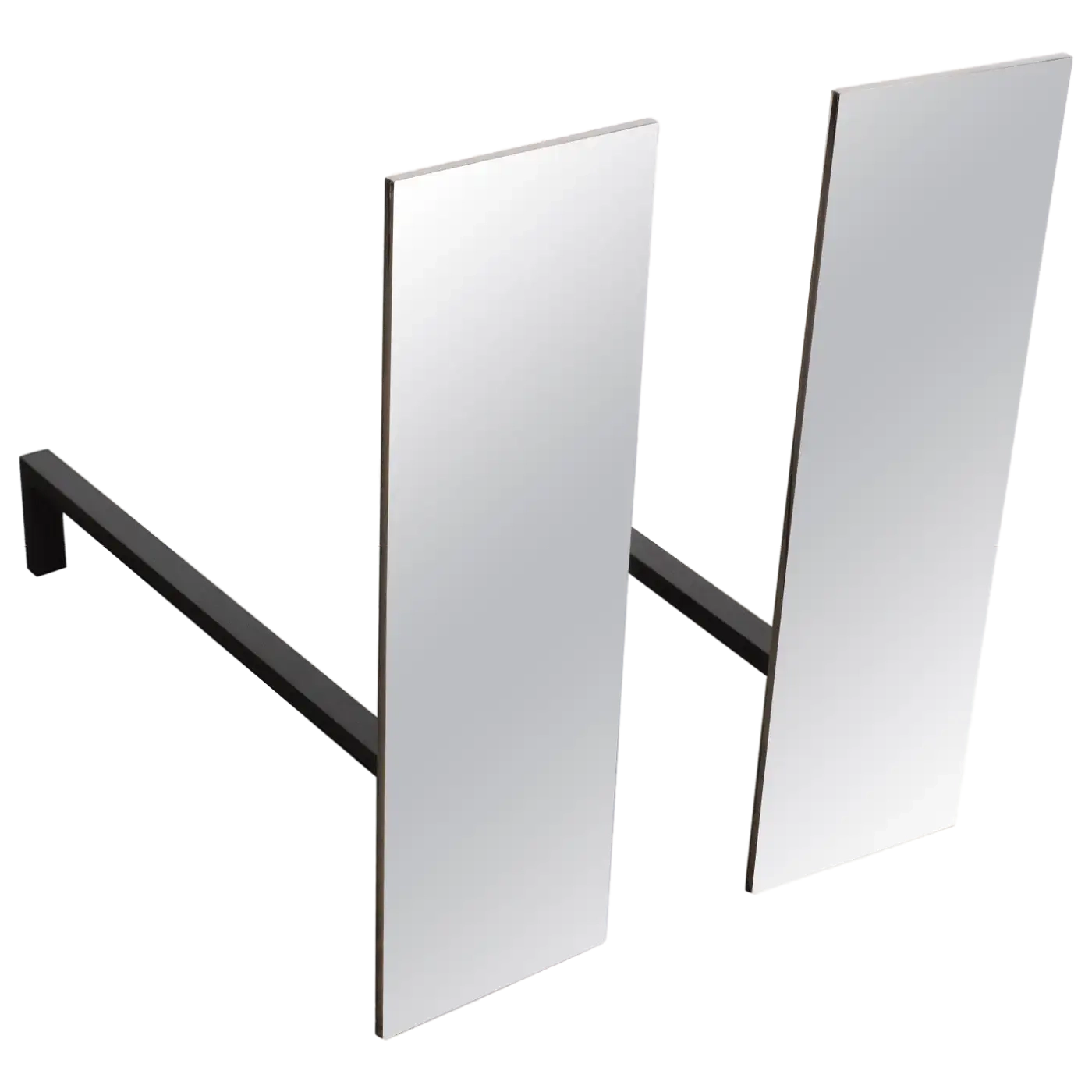 The original 100 year old mantle was updated with a new stone inset, above which I hung a mirror from the Paris Flea Market, vintage ribbed wood lamp, and art from my Ralph Lauren days. The RW Guild candlesticks were a gift from a friend, and the andirons are 1stDibs.