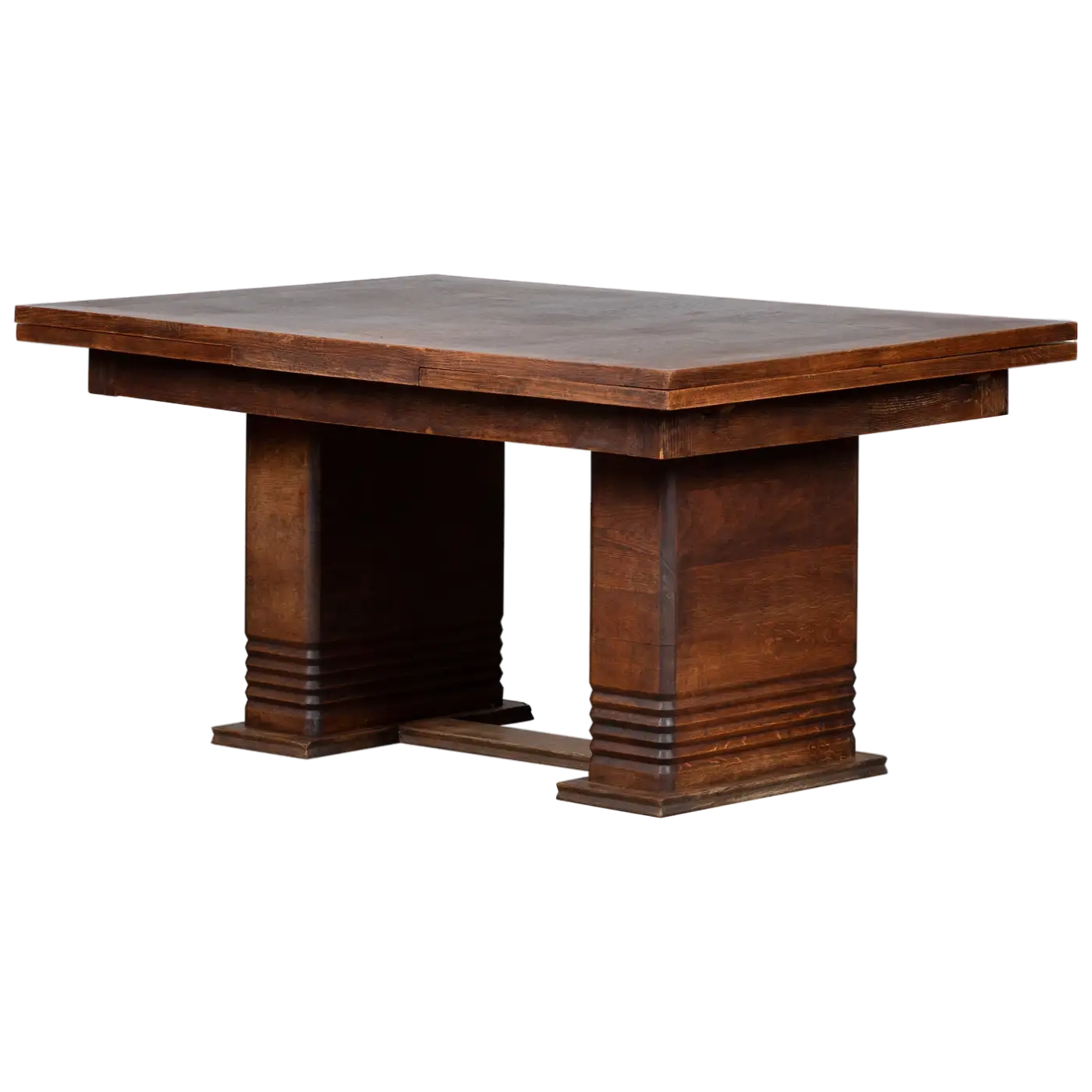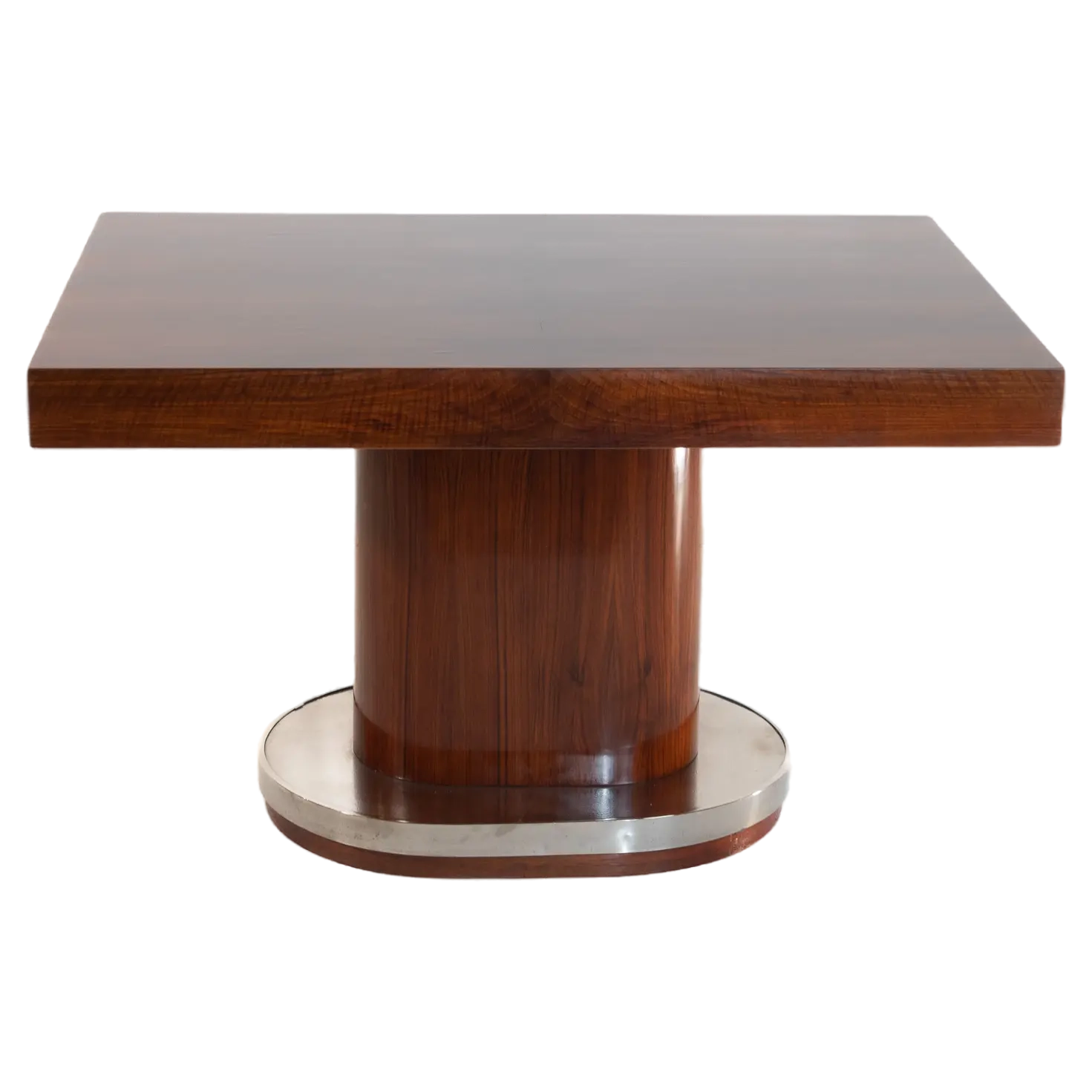 Where’s the TV? We hid it in a custom-designed mahogany cabinet to the right of the fireplace. Overhead I hung a piece of art from Marfa artist Cody Barber. The table is custom, the chairs from Chairish, and the rug is via Misha Carpet.