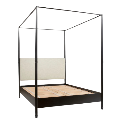 An over-scaled poster bed may not seem like a logical idea, but I like the scale and architecture it adds to the tiny bedroom. Linens are Williams Sonoma and Walmart (believe it or not) - they are these great thick cotton sheets we love.