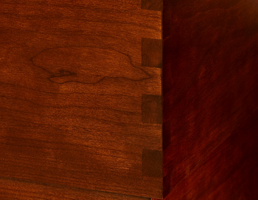 A detail of the custom millwork vanity; faucet by Waterworks, hardware by Restoration Hardware.