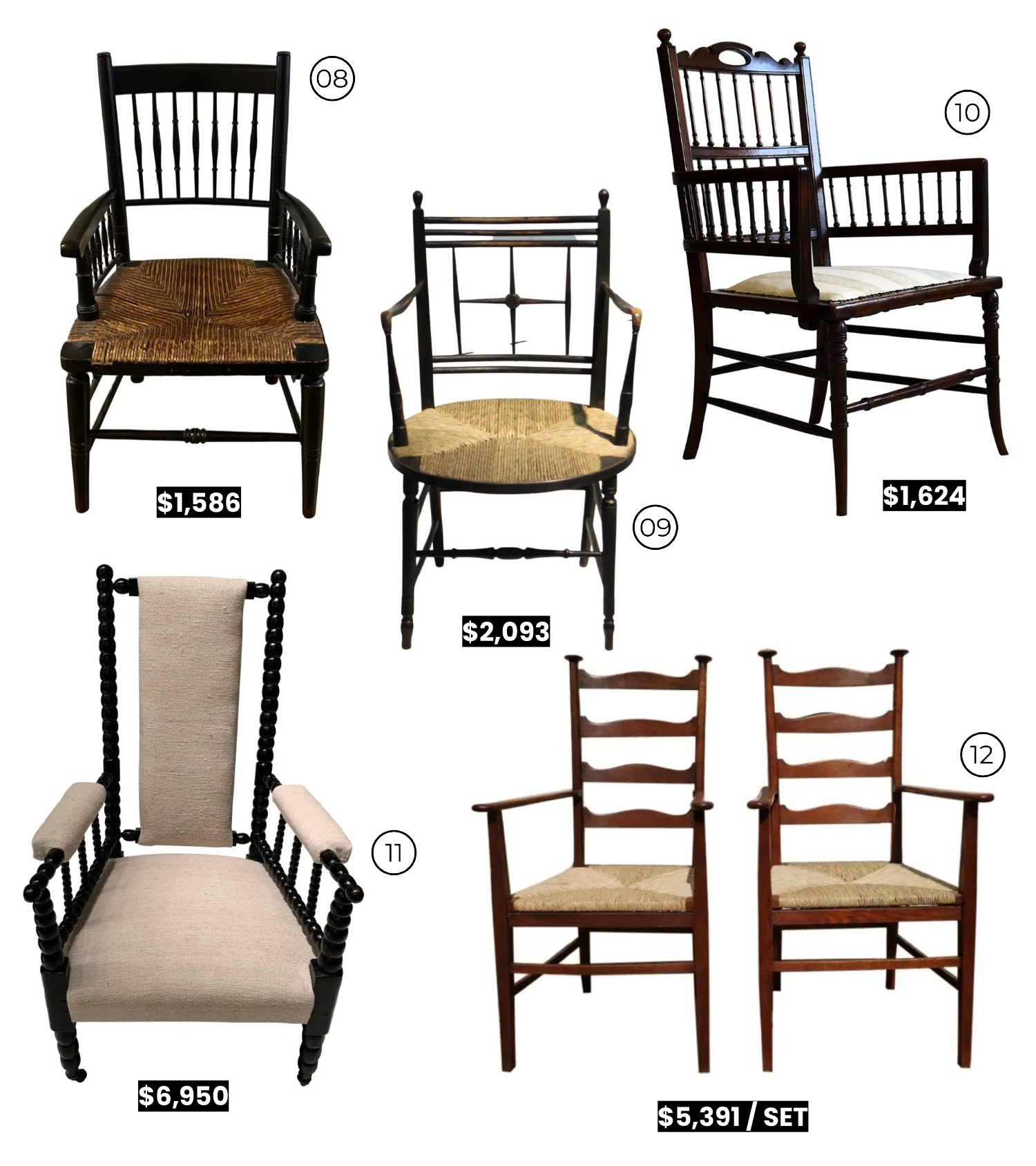 While spool furniture takes all shapes - beds, tables, etc. - our round up is focused on chairs. In my hunts for furniture on the North Fork, I’ve acquired a few Bobbin chairs with a woven seat, and love the vintage contrast they add to some of my more contemporary furnishings. There is something decidedly old and Americana feeling about them. Click through and add these pieces to your home, to make your look a total knock out.