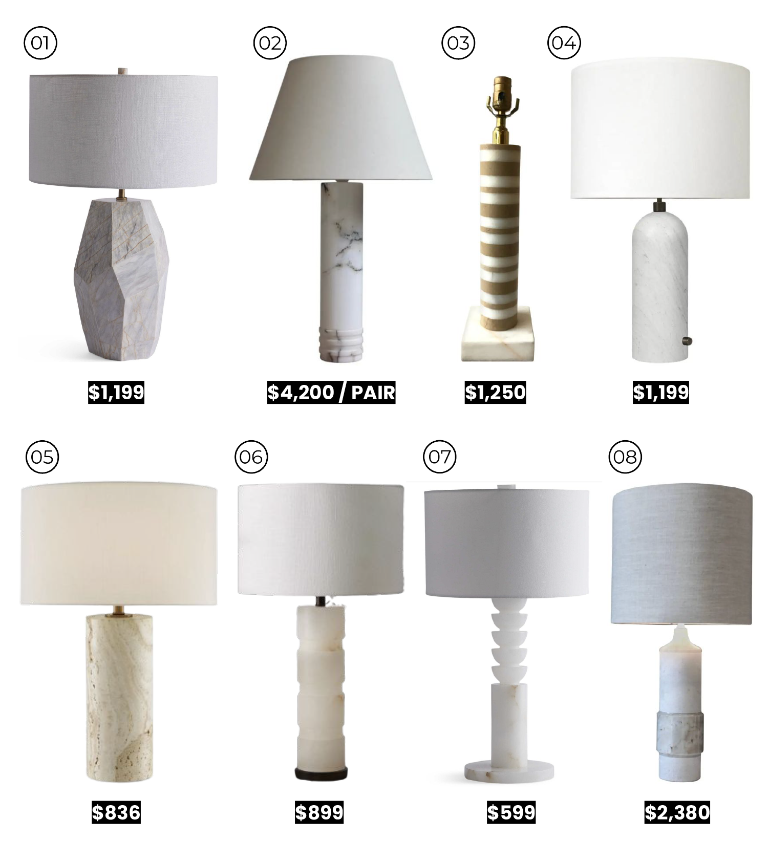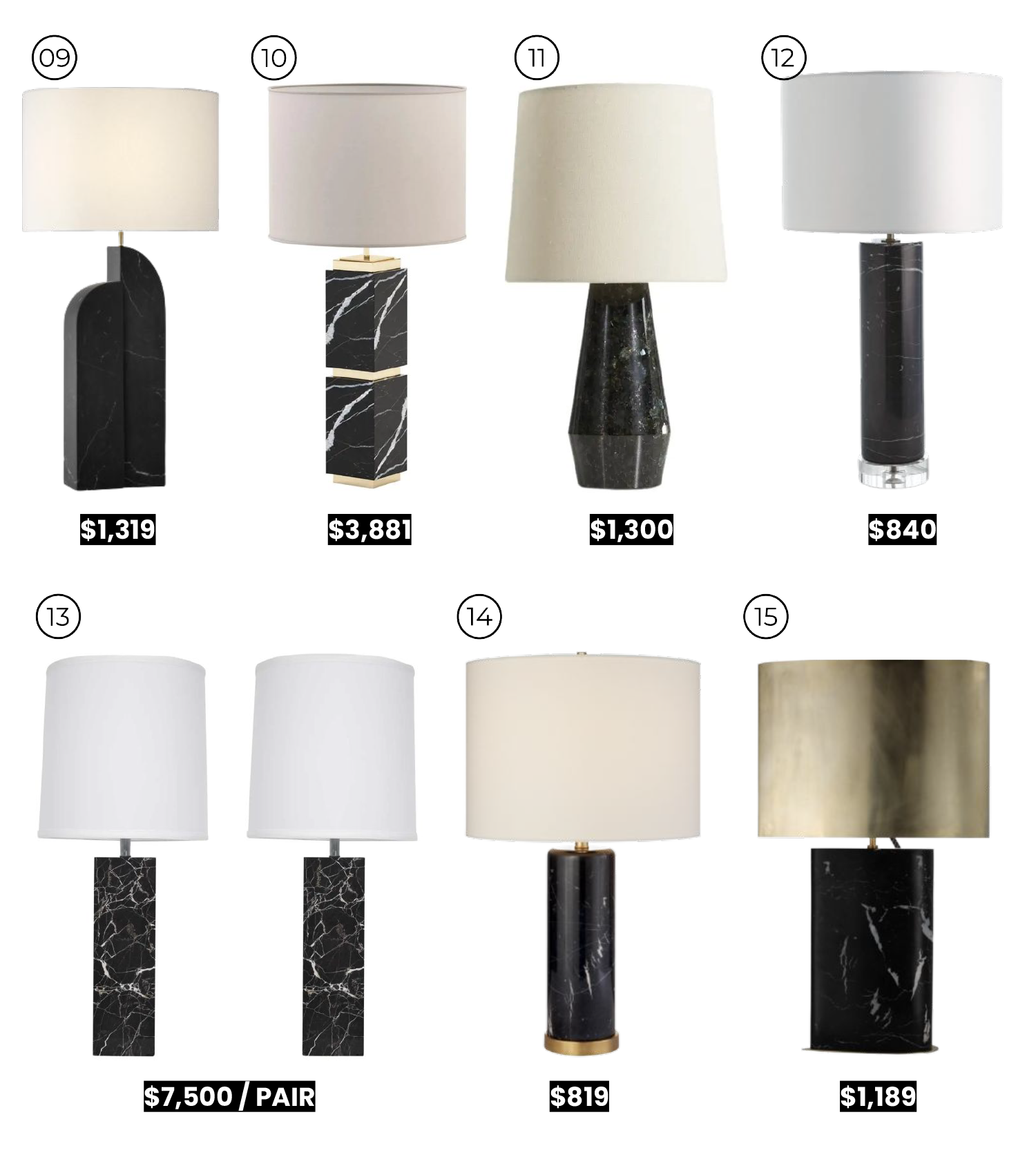 The selection of marble lamps in our round up are - SHOCK - black and white. Click on over to your faves to see what other materials and colors may be available too.