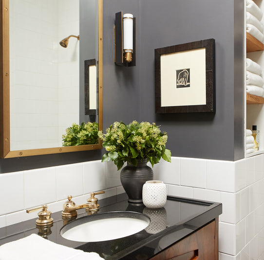 Picture lights are a great source of indirect light for a room. Of course they light up the artwork of focus, but the reflected light adds a soft and romantic glow to the rest of a space too. I’ve added picture lights to all of our homes in unexpected places, like placing 2 of them to the galley kitchen of our Greenwich Village studio.