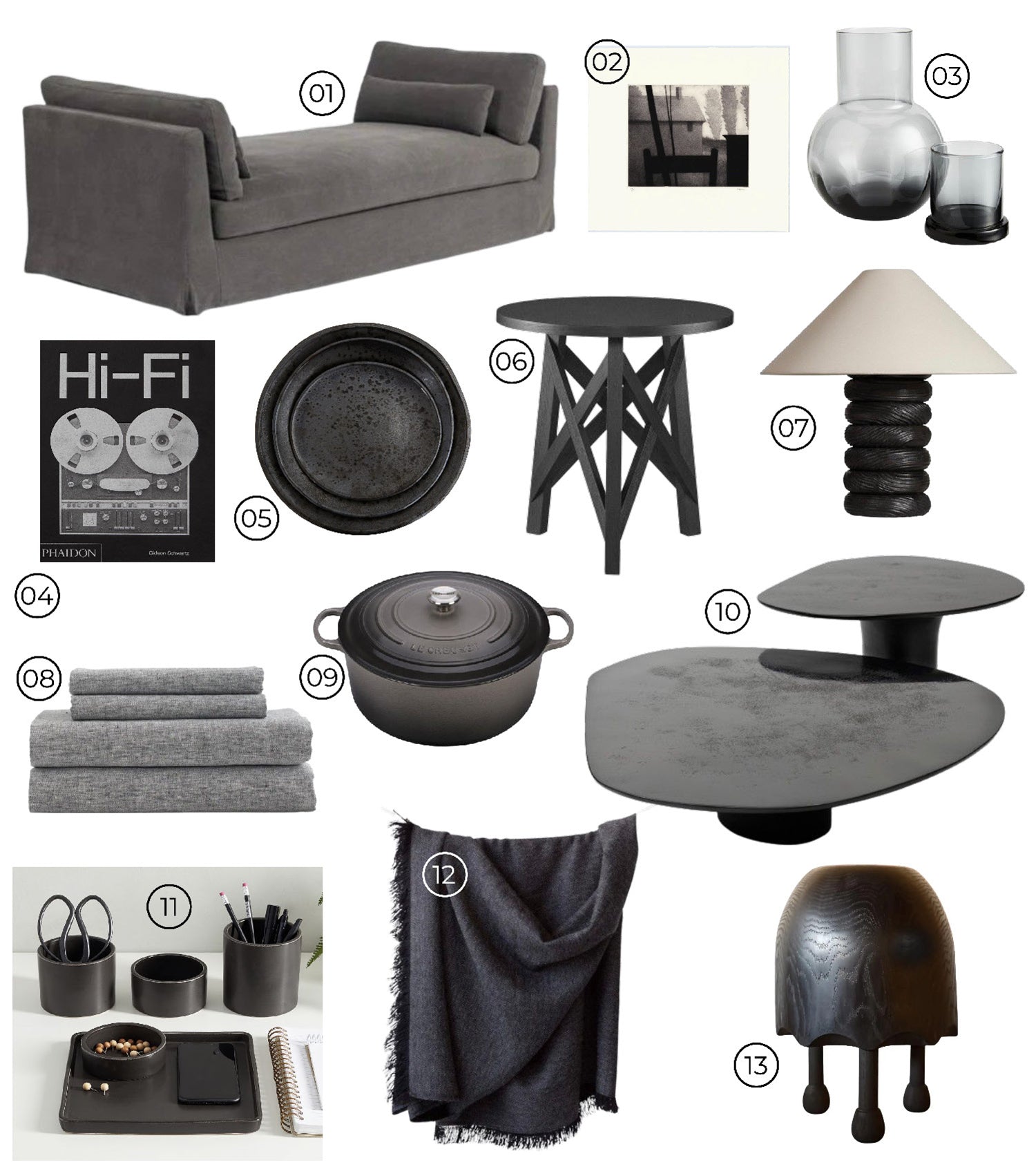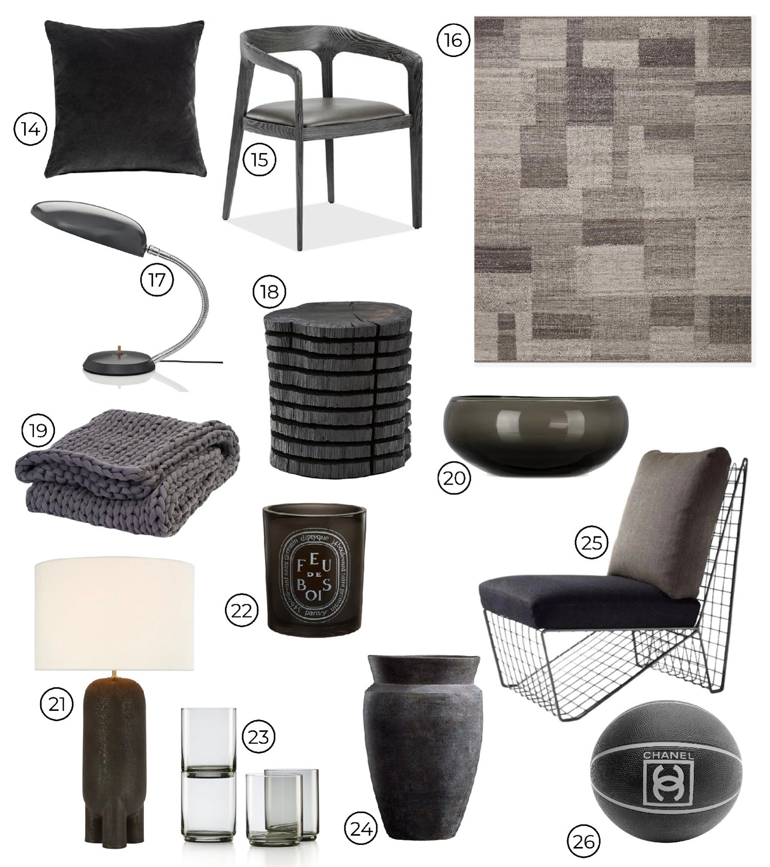 Well, I’m here to challenge the notion. Charcoal has proven to be a go-to room maker for me. We’ve painted more than a few rooms inBenjamin Moore Kendall Charcoal, - it’s dark. Like, pretty dark, but not black. While some also think that dark colors make a room feel smaller, I’m here to challenge that too - a Charcoal room feels like a cozy sweater…a moody cocoon. As a trend, we’re adding a little sultry smokiness to all categories - smoked glass and mirror glistens withTom Ford sex appeal. Chunky charcoal blankets and sweaters feel luxurious and embracing.