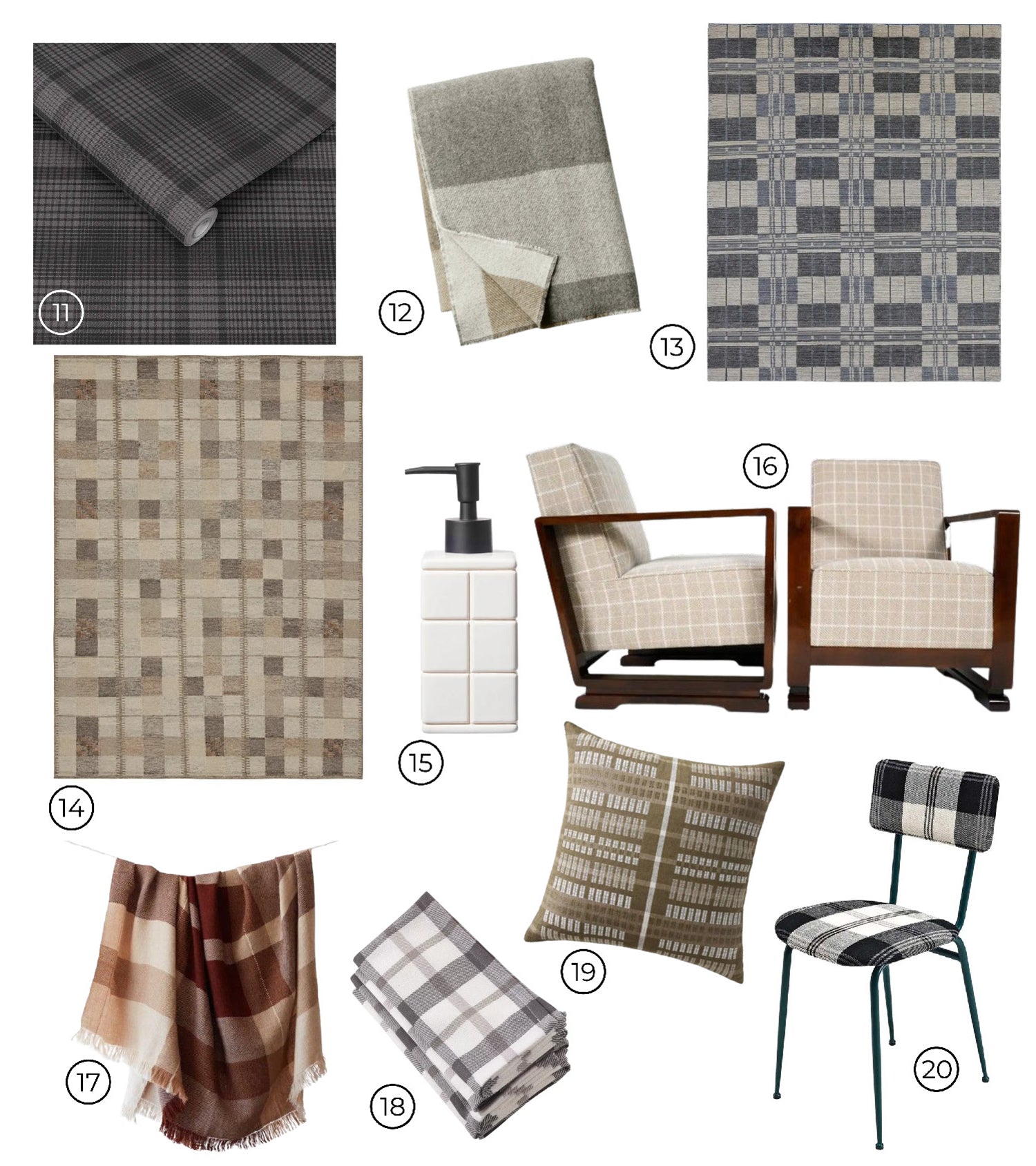 And isn’t that really the essence of plaid? From flannel shirts (lumberjack much?) to Burberry trench coats, it’s a real “dress it up, dress it down,” kind of material. Plaid adds a sense of heritage to spaces, but is malleable in its effect and application. Scaled up in rugs or furniture, it has a more youthful spirit, showcased in a custom carpet we designed for the Harvard Club, NYC. Woven more tightly and in tones of black and white, it’s a delicate, classic looking plane (I’m thinking of the marble mosaic I recently installed in my own bathroom.)