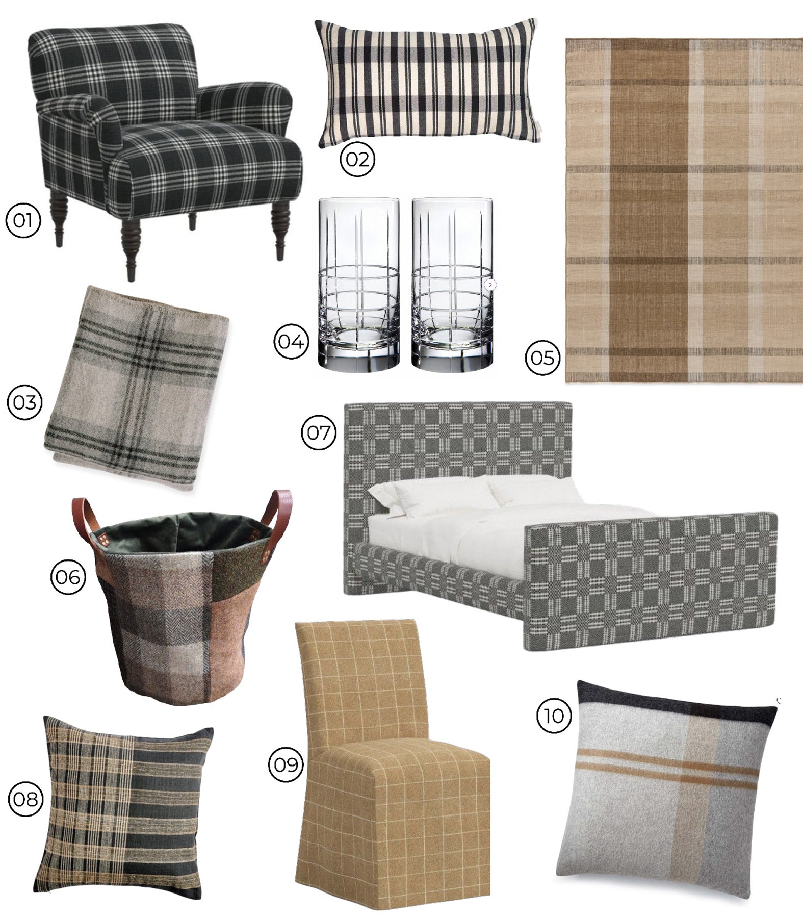 In our round up, plaid is both the accessory and main character - blankets, barware, and pillows dress up your home in an instant, and bold plaid overcoats make a statement for your winter look. Imagine cozying up in a plaid chair with a plaid blanket and pillow, drinking a Manhattan from your Ralph Lauren plaid cut crystal rocks glass, while wearing rad plaid shades? Too much? Nope - because we’re mad for plaid.