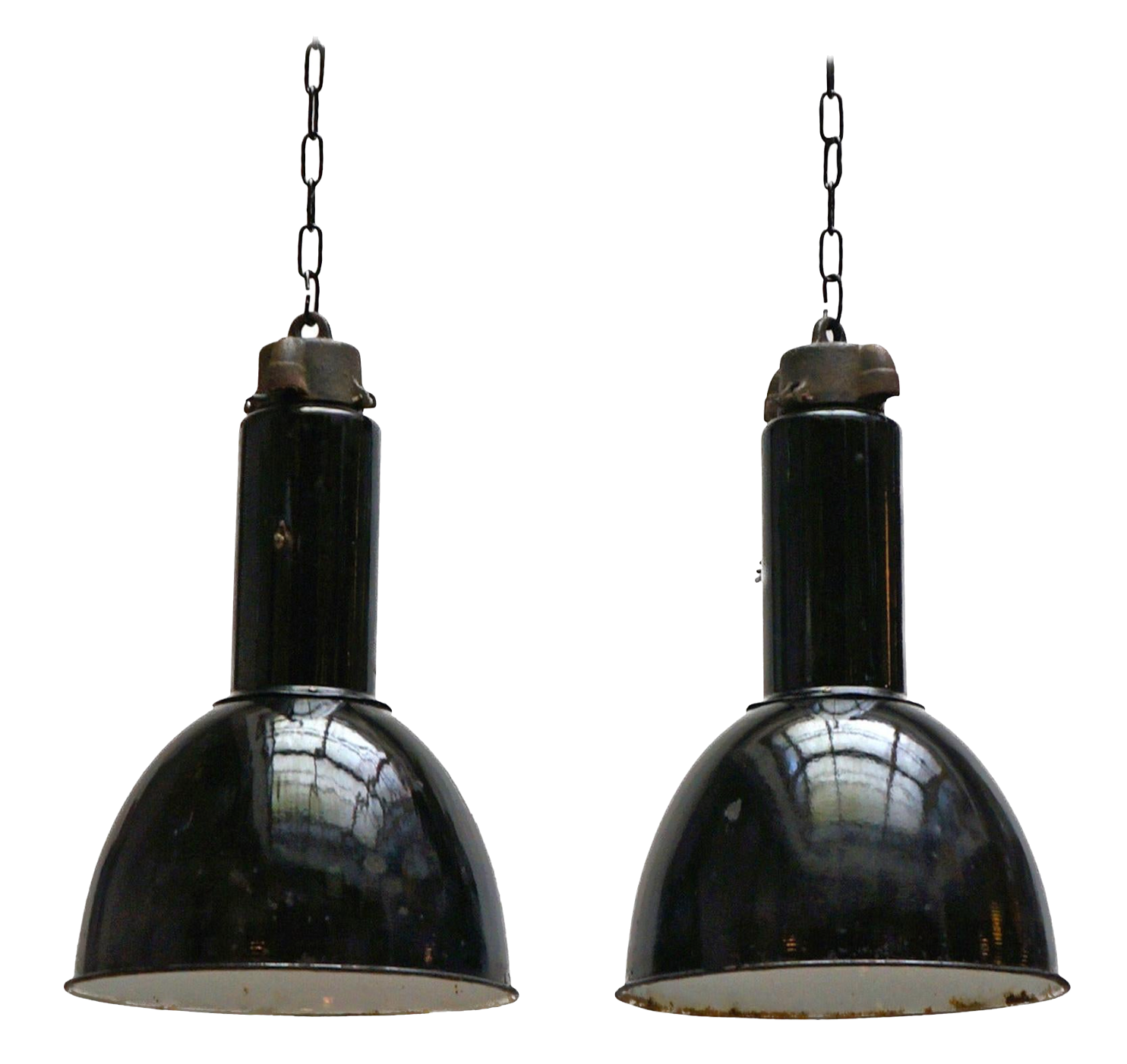 Enamel Industrial Factory Pendant Lights, Set of 2